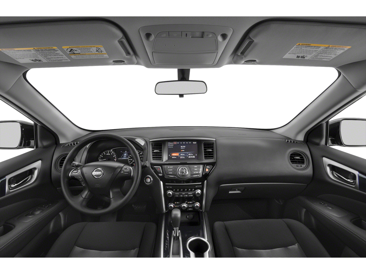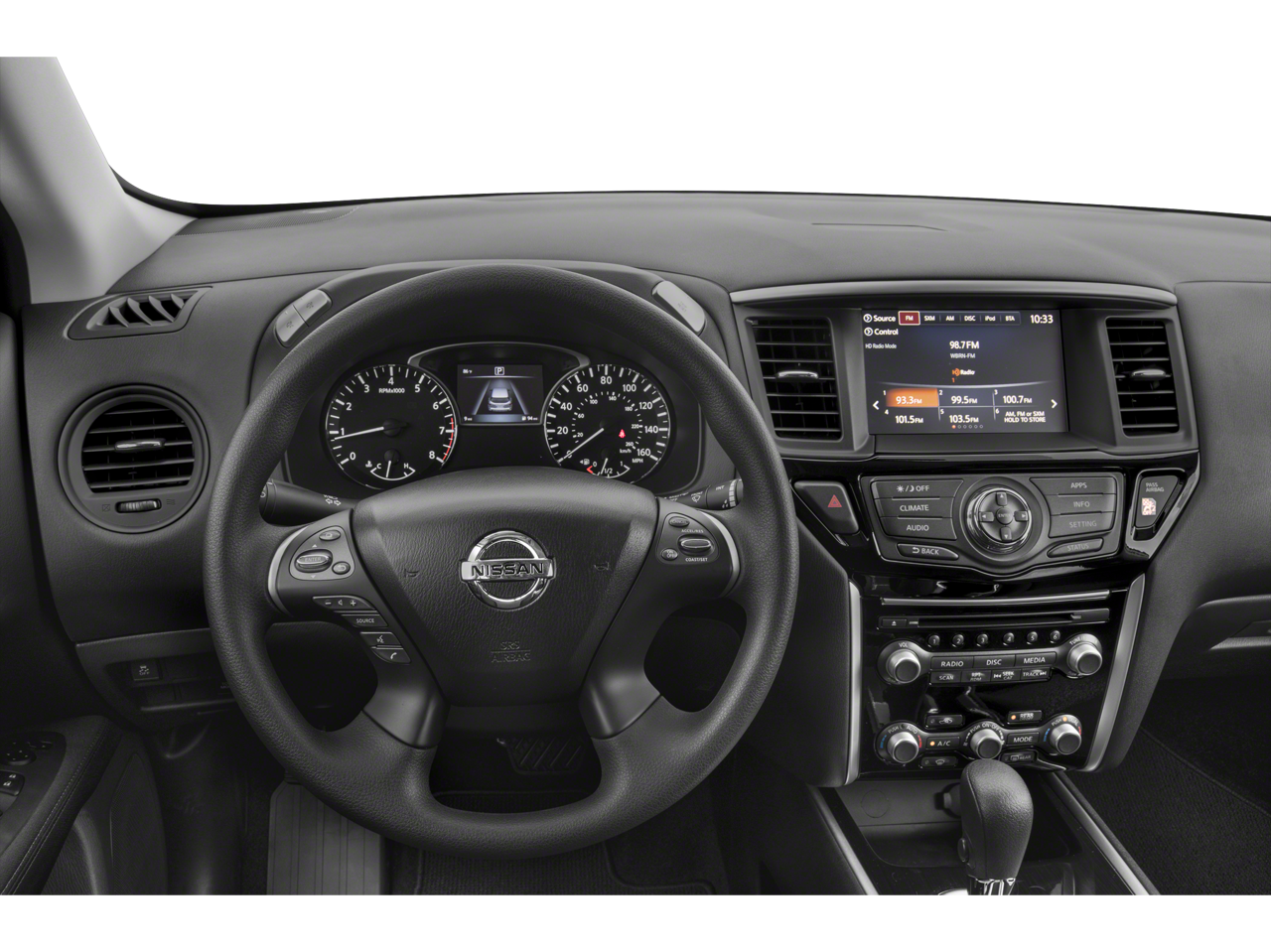 Inside, the Pathfinder S offers seating for up to seven passengers, with a versatile 60/40 split-folding second-row and reclining third-row seats. The spacious cabin is equipped with thoughtful features, including automatic climate control, a 6-speaker audio system, and convenient steering wheel-mounted controls. Stay connected with the NissanConnect infotainment system, featuring AM/FM/CD audio and SiriusXM satellite radio.