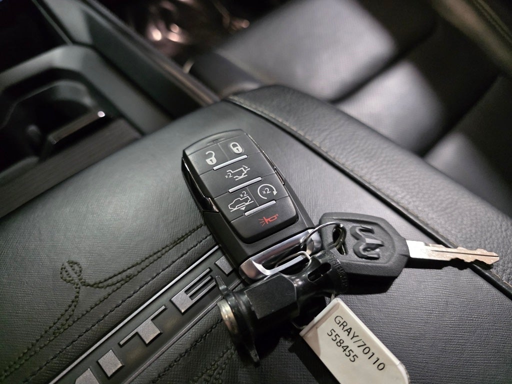 Certified By Carfax -NO ACCIDENTS!, Accent Color Door Handles, Accent Color Premium Power Mirrors, Adaptive Cruise Control w/Stop & Go, Auto-Dimming Exterior Driver Mirror, Black Day Light Opening Moldings, Black Exterior Truck Badging, Black Grille Surround Texture 7 Black, Black Headlamp Bezels, Black Painted Exterior Mirrors Caps, Body Color Front Bumper, Body Color Rear Bumper w/Step Pads, Convex Wide-Angle Exterior Mirror Insert, Digital Rearview Mirror, Dual Exhaust w/Black Tips, Exterior Mirrors Courtesy Lamps, Exterior Mirrors w/Heating Element, Exterior Mirrors w/Memory, Exterior Mirrors w/Supplemental Signals, harman/kardon 19 Speaker Premium Sound, Heads-Up Display, Lane Keep Assist, LED CHMSL Lamp, Limited Level 1 Equipment Group, MOPAR Spray In Bedliner, Navigation System, Night Edition, Parallel & Perp Park Assist w/Stop, ParkSense Front/Rear Park Assist w/Stop, Pedestrian Emergency Braking, Pick-Up Box Lighting, Power Running Boards, Power-Folding Mirrors, Quick Order Package 28M Limited (DISC), RAM Grille Badge - Black, Sport Performance Hood, Surround View Camera System, Tailgate Ajar Warning Lamp, Tow Hooks, Tri-Fold Tonneau Cover, Wheels: 22 x 9 Black Aluminum, Wireless Charging Pad.